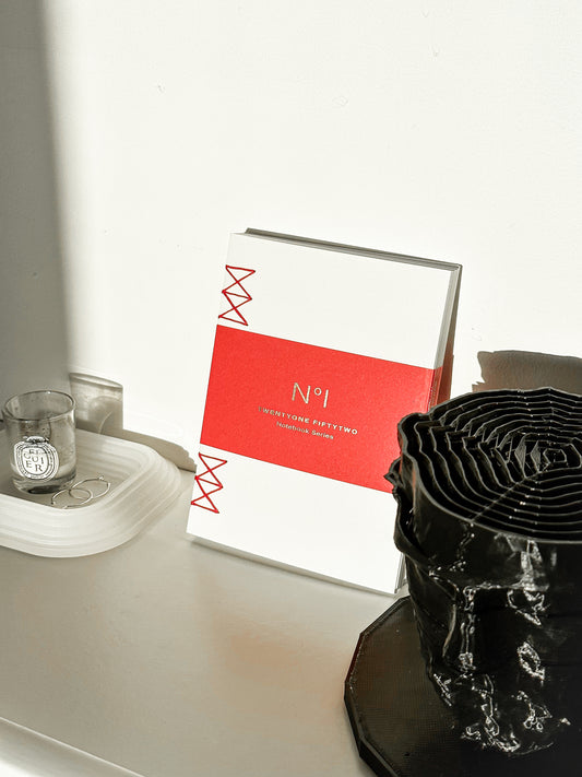 As the first goods of Twentyone Fiftytwo, №1 is hand-stitched with 100% cotton thread by one by, in a limited edition of 200. Lays perfectly flat at 180 degrees. Great for both fountain pen and pencil.