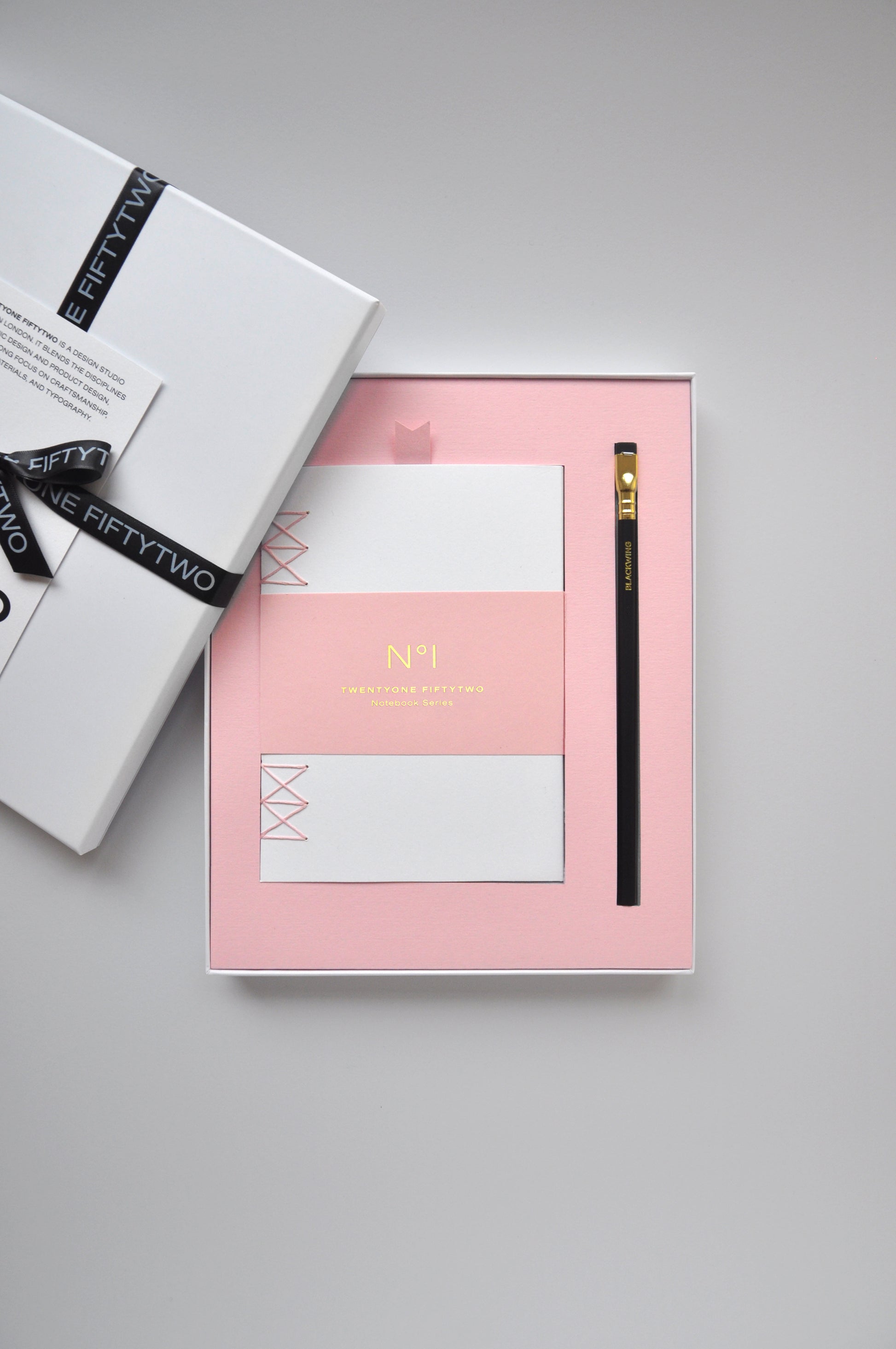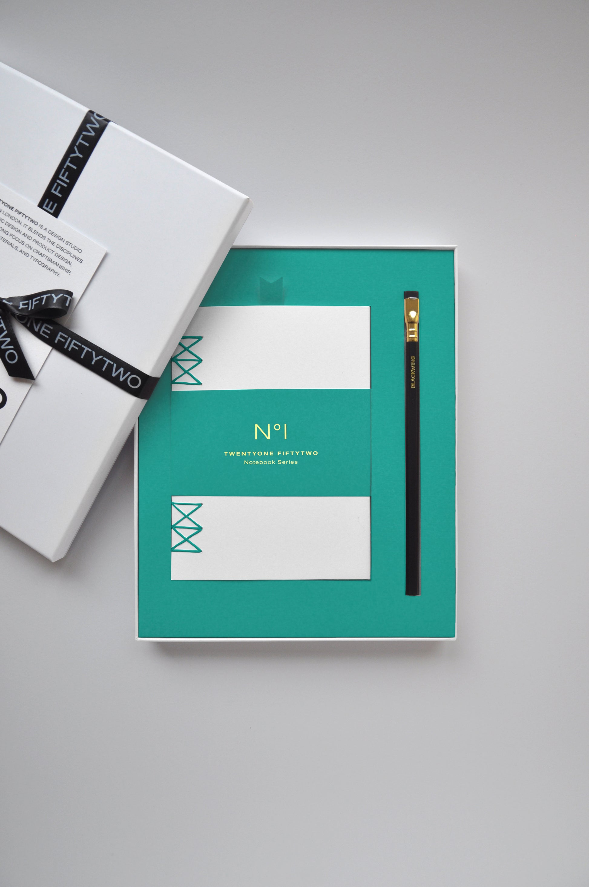 Twentyone Fiftytwo gift set includes our beautifully hand-bound notebook №1 along with the iconic Blackwing Matte pencil, featuring a square ferrule and black eraser. Presented on a paper padding of the same color as the notebook, in a white gift box.